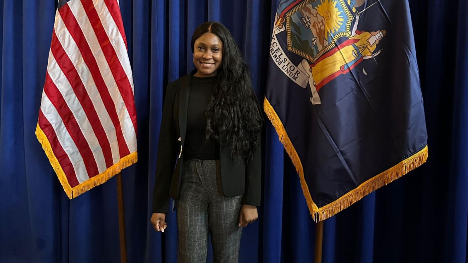 "Participating in Albany Day was an empowering experience,” said Doctor of Nursing Practice (DNP) student Michelle Ojo, who spoke with Coffman about the growing need for youth mental health services. “Using my experience as a Pediatric Nurse Practitioner student, I advocated for bills addressing the lack of providers and long wait times adolescents face when seeking mental health services. This experience showed me the value that our voices and clinical expertise have beyond the clinical setting and our ability to influence policy in New York."