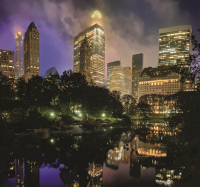 Such hope emanates from a photograph by MDE-DNP student Joseph Herman, which shows a building half in shadow and half in sunlight, and from a painting by Dorothy Simpson Dorion, BS ’57, which shows one side of Fifth Avenue in darkness and the other in light.