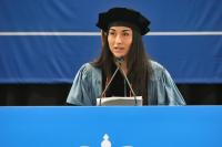Ian West, DNP ’24, an assistant professor of clinical nursing, offered greetings on behalf of the Alumni Association. Cecilia Lopez, DNP ’25, was the Student Speaker.