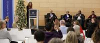 Columbia University School of Nursing’s Global Health Program together with Columbia University School of Nursing's Alumni Association welcomed faculty, alumni, and friends of the Columbia University community to discuss the school’s newly expanded Global Health Program and its continued commitment to health justice at its “Columbia’s Global Handprint Across the Globe” panel on December 6.